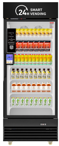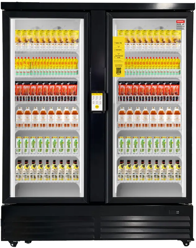 Receipts are typically sent in about 60 seconds after closing the cooler. Users scan a QR code to receive their receipt. First-time users must register an email address to receive the receipt. Some abnormal orders might take longer.